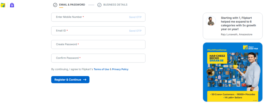 Once you’ve figured out the basics for dropshipping, it’s time to create your seller account on Flipkart. It is quite simple to register yourself as a Flipkart seller, which is why this platform is great for business beginners.