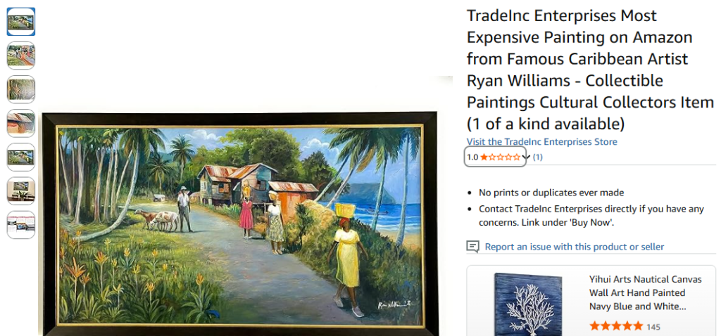This premium artwork titled “The Way” has appeared on Amazon with a valuation exceeding $30 million. It represents how Amazon also serves high-end art collectors.